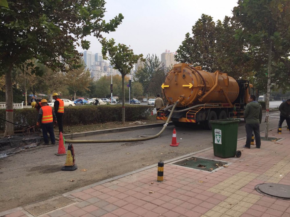 在站前路清淤现场,工作人员介绍,本次清淤他们运用了高压清淤机械,将带有高压喷头的水管从排水井口深入到地下排水管道中冲洗,同时用吸污车将冲下的淤泥污水吸收起来,集中运送到路北淤泥无害处理场,做到了“淤泥不落地,工完场地清”,最大程度避免了对市容和环境卫生造成影响。